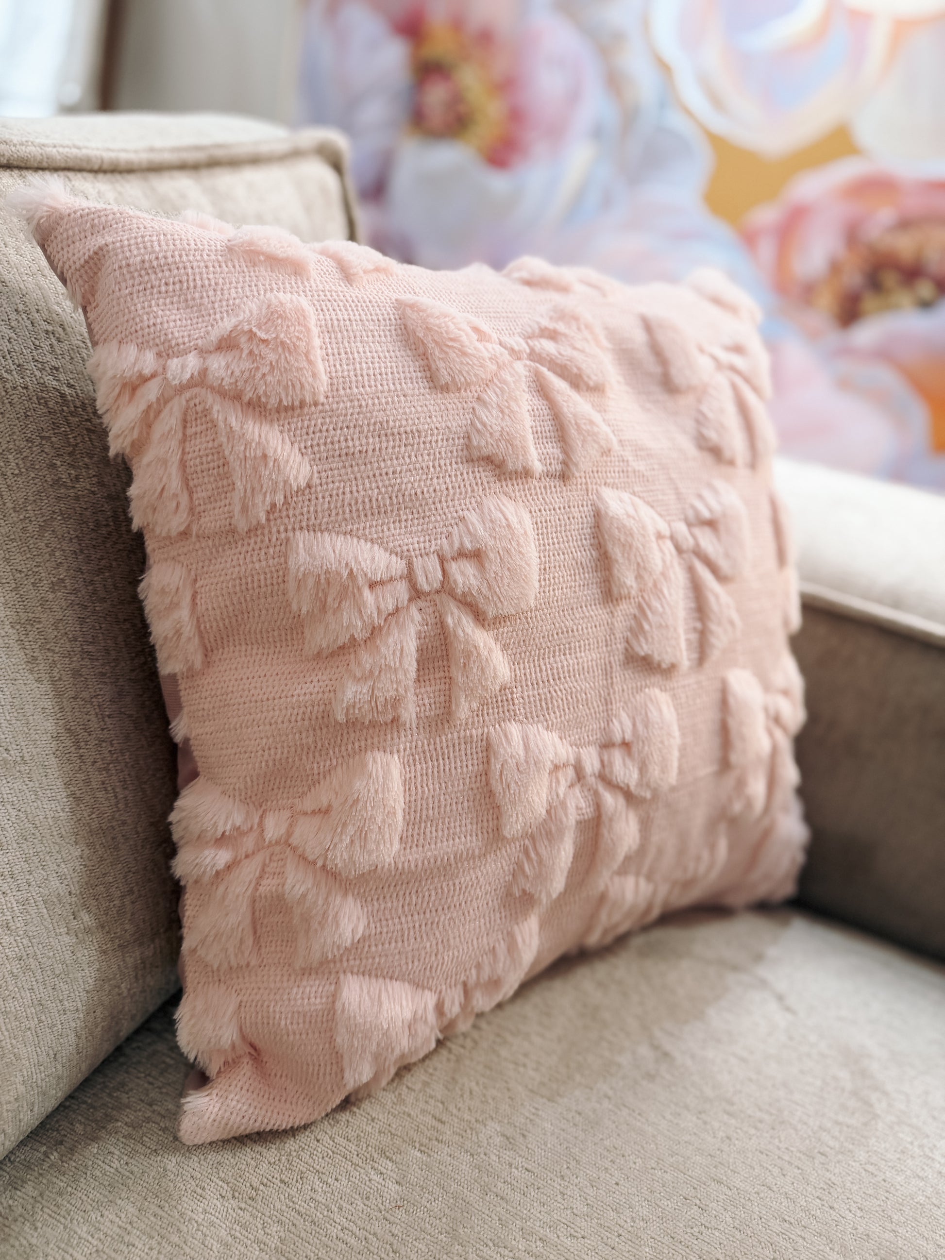 Blush Bow Textured Cushion 45 x 45 cm (Inner Included)