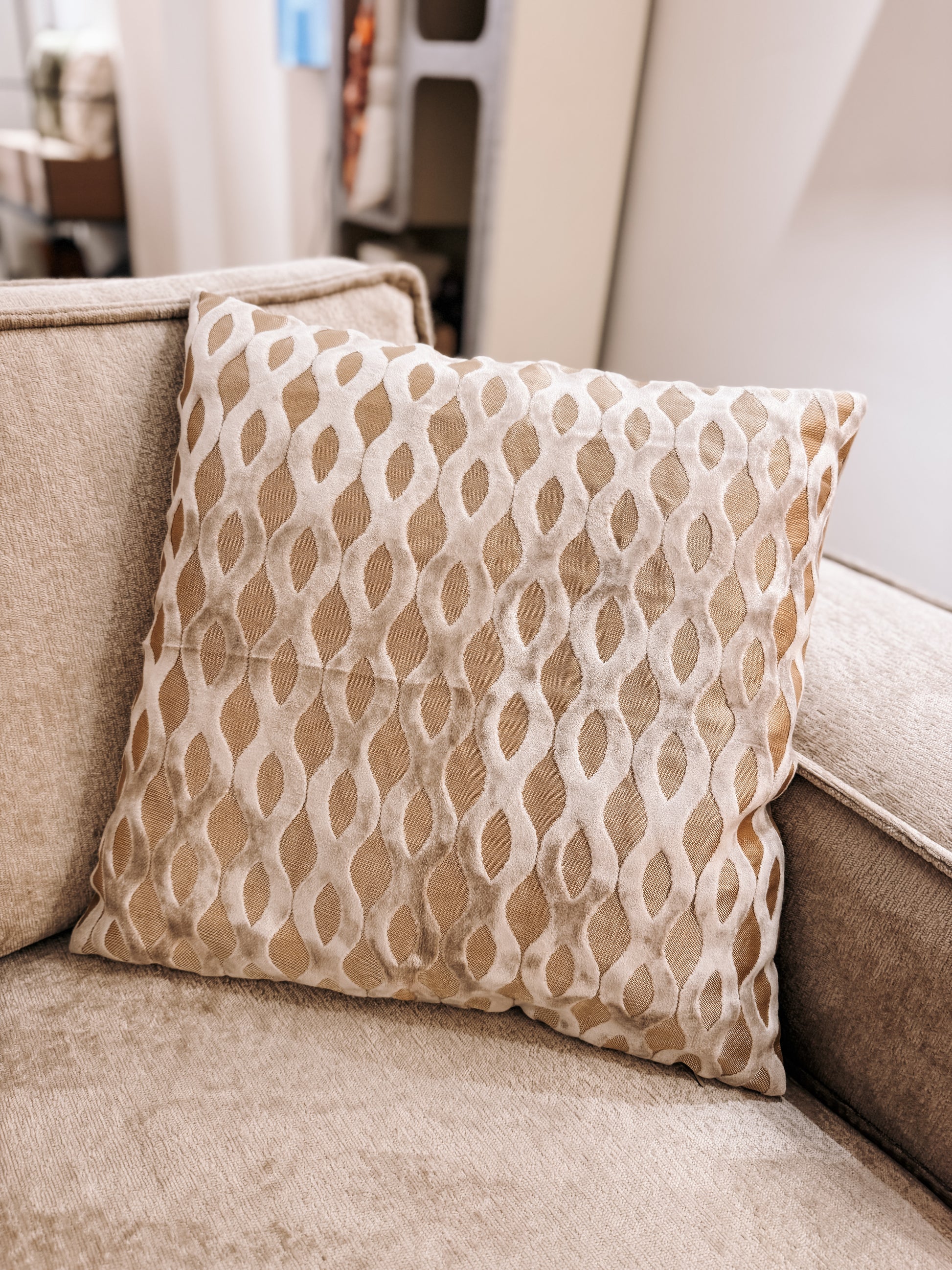 Bring contemporary elegance to your home with this 50 × 50 cm cushion, featuring a striking geometric cut-velvet design in warm champagne and beige tones. The raised velvet pattern adds depth and a luxurious tactile quality, with soft velvet back in champagne making it a standout accent piece for sofas, armchairs, or beds.