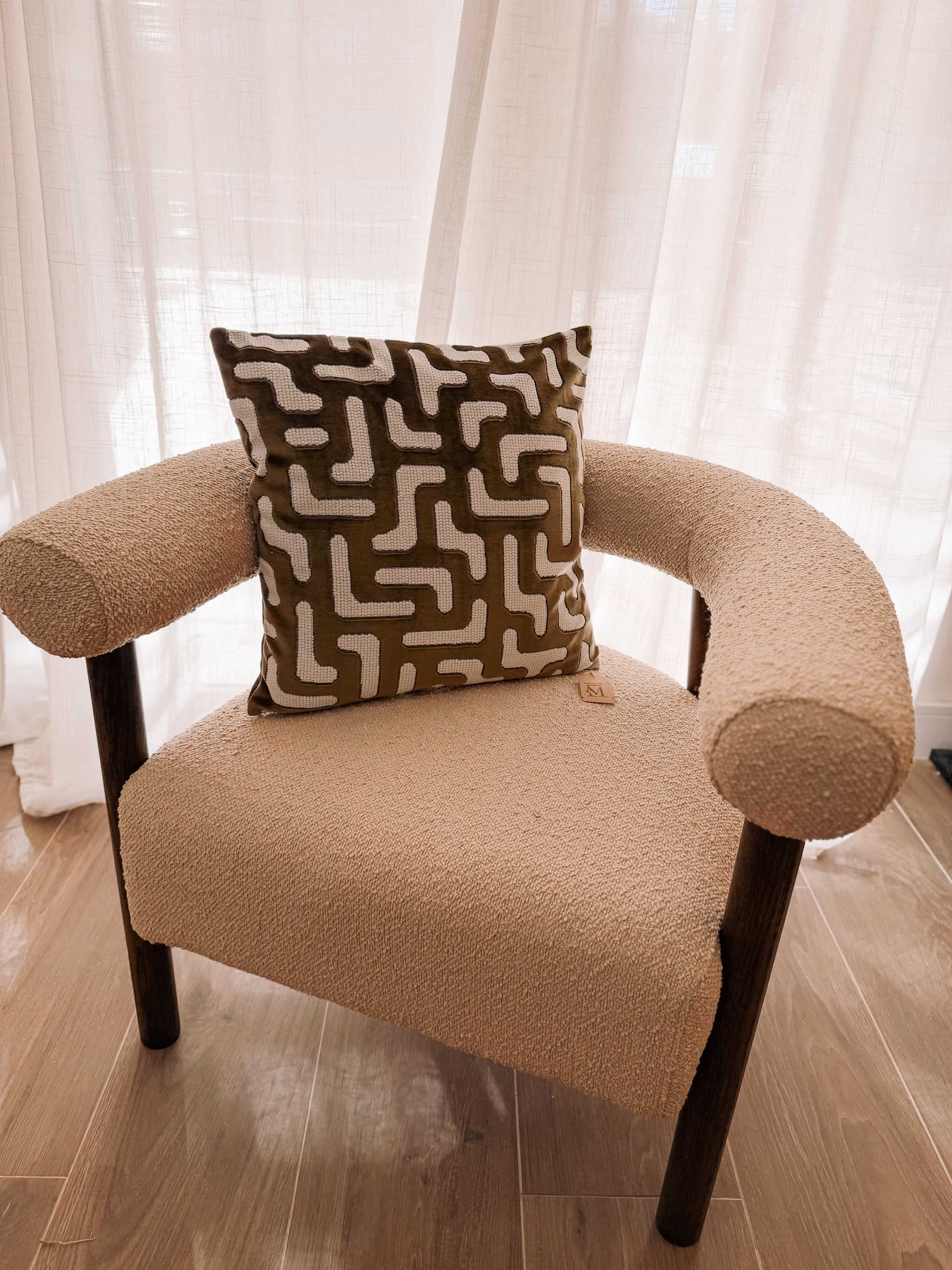 Warm, sculptural, and effortlessly stylish, the sage Geometric Cushion brings depth and texture to any interior. Designed in a rich sage toned base with contrasting raised ivory detailing, this cushion adds visual interest while remaining grounded in a neutral, timeless palette.